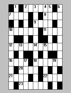 ACROSS 2. Mammalian species resembling terrorists 7. Filipino nut (thanks to Ina, I know this one) 8. Abbreviation for an activity popular among ratbags 9. Fateful day of month for great man of old 10. Ancient hobby of our once-misguided Danish friends 11. Greek portico, reminding us of past glories of the West 12. What is at stake? 16. French for wave, e.g. of unwanted immigrants 18. A fifth crusade is now ... 20. French for a small case, e.g. of nerves 21. Taverns, like the one which thought itself too good for Jesus 22. Bill Clinton was a ... 23. Bill Clinton left foreign policy in a ... DOWN 1. Knock-kneed Antipodean 2. An example of Western permissiveness 3. Mr Bush is ... our future 4. Songs of praise, e.g. to Mr Howard 5. What pesky birds have done in the tree overhanging my front door 6. Just another spelling of Towel-head Zero 10. One of the greatest figures of the 19th Century 13. What demonstrators can be classified as 15. What seamstresses ply while thinking of their sweethearts in the Gulf 17. The South Australian institution which ought to have been sold decades ago 19. The kind of final test I find effortless |